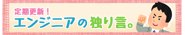 いつも当サイトをご利用いただき、ありがとうございます。 誠に勝手ながら、「エンジニアの独り言」は毎月更新から 定期更新に変更させていただくことになりました。 コラムの更新を楽しみにしてくださっているみなさま、大変申し訳ありません。 ご理解のほどよろしくお願いします。